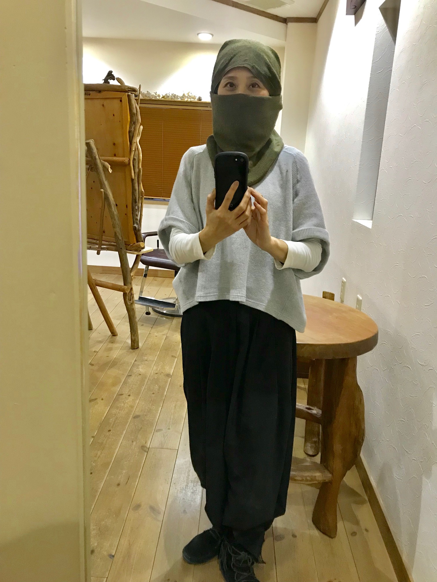 ファッションチェック 2018/01/31 芸能人のファッション自撮り風 忍者? はたまた ○○○○国の戦闘員? 私は 何をしようとしているでしょうか? ずーっと暖房の効きが悪く 天井のエアコンを開けてみたら ・・・分厚いほこりが・・・ お客様申し訳ありませんでした これじゃー暖房が効かない訳です という程 ほこり・・・ フィルターが1枚ある感じ・・・ お見せ出来ません(;´∀`) せっせとキレイにして・・・ わ~~~~風が来る 暖かい♡♡♡ 忘れていた暖かさ♡ 以後気お付けます!!
