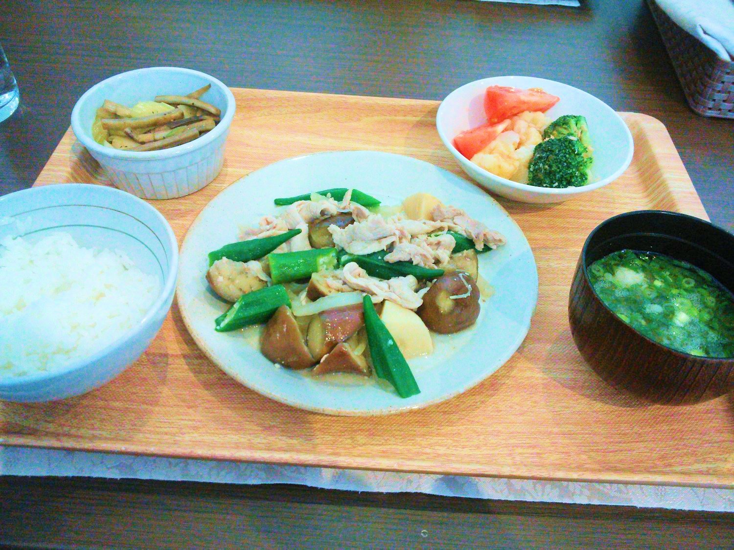 *ナスとオクラの肉味噌炒め定食*