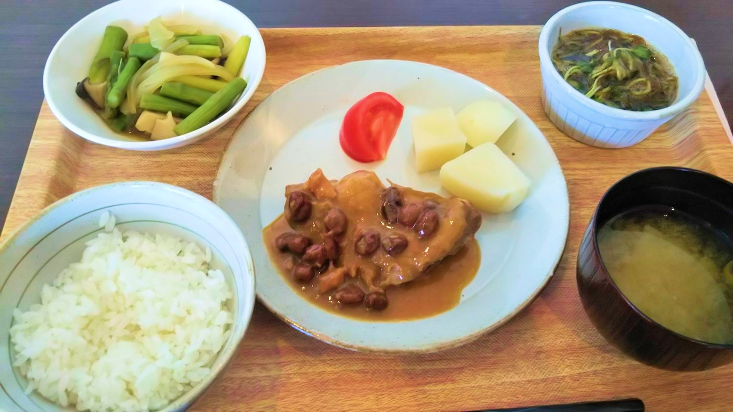 *鶏肉とレーズンの赤ワイン煮定食*