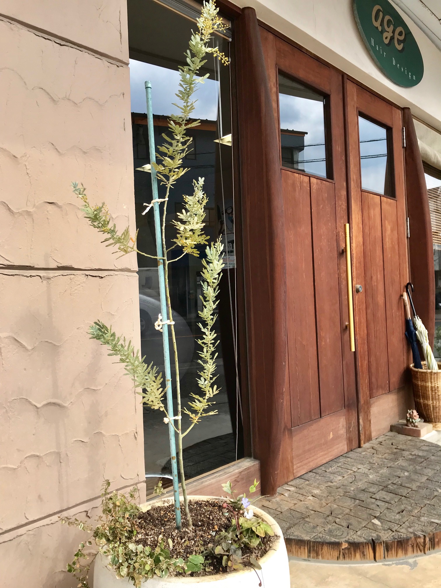 お店の前の植木鉢を