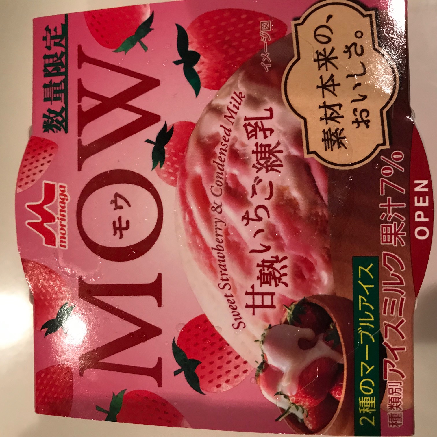 またまたまた アイス 2021/09/13 普通のお安いカップアイスクリームでは 杉山 「MOW」が1番好き 新しい味 発見!! 『完熟いちご練乳』 お おいし~ 又 リピ買いだね!! 先日 紹介のマロンアイスちゃん ヨーカドーで買い足して 冷凍庫にため込んでおります