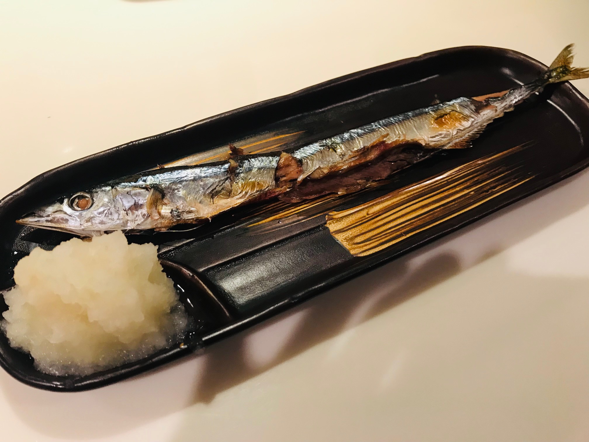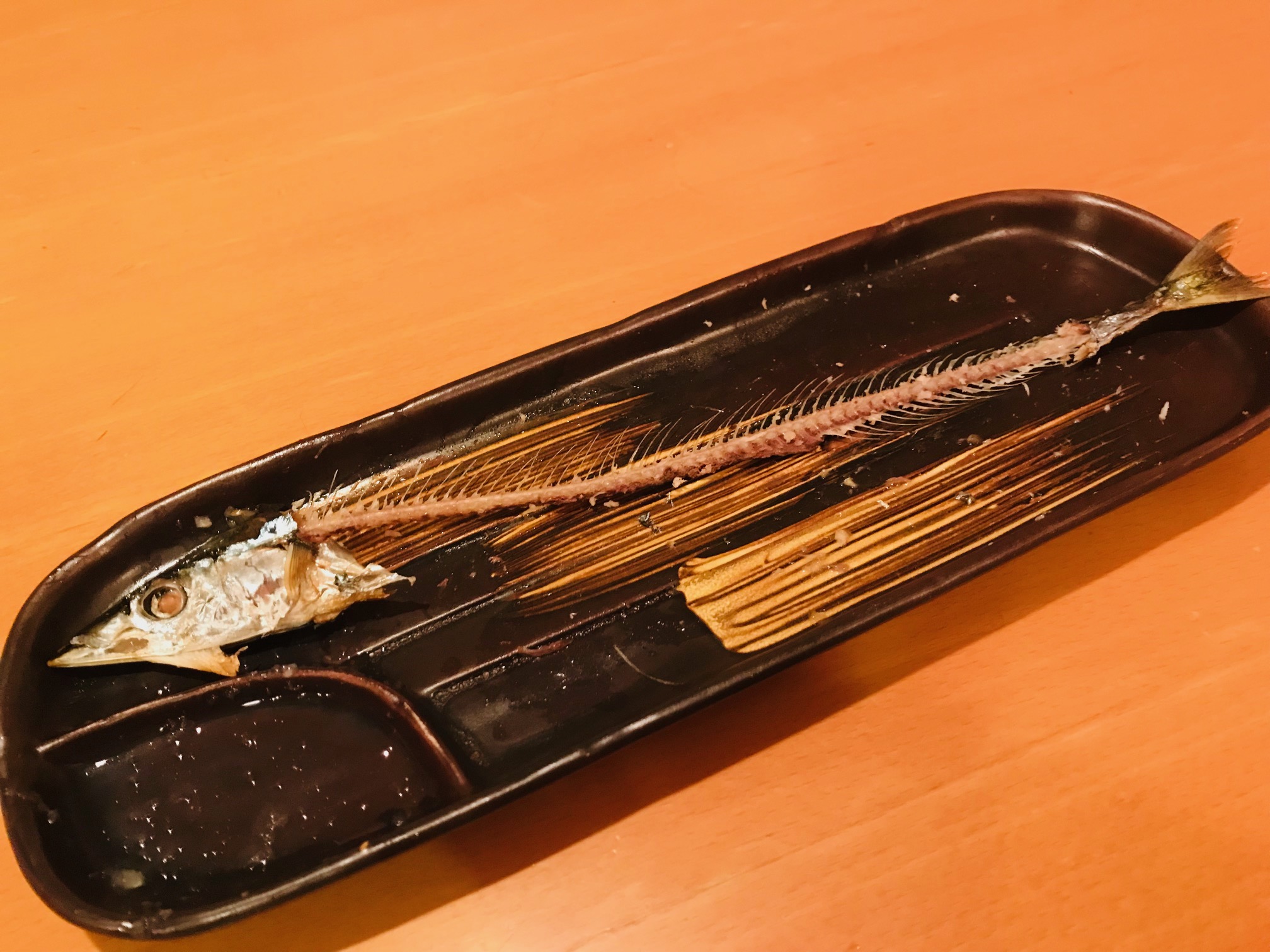 秋の味覚 2021/09/19 今年も サンマちゃんの季節到来 ヨーカドーで1本200円程 なんか安いな 焼いてみて安い理由がわかりました ちっさ (笑) 細っ めざしの大きい版 みたいな 内臓取り除いたので(杉山この作業好き) 焼いたらかなり細くなりました いささか焼き過ぎで縮んだのね でも キレイにいただきました ごちそうさまでした