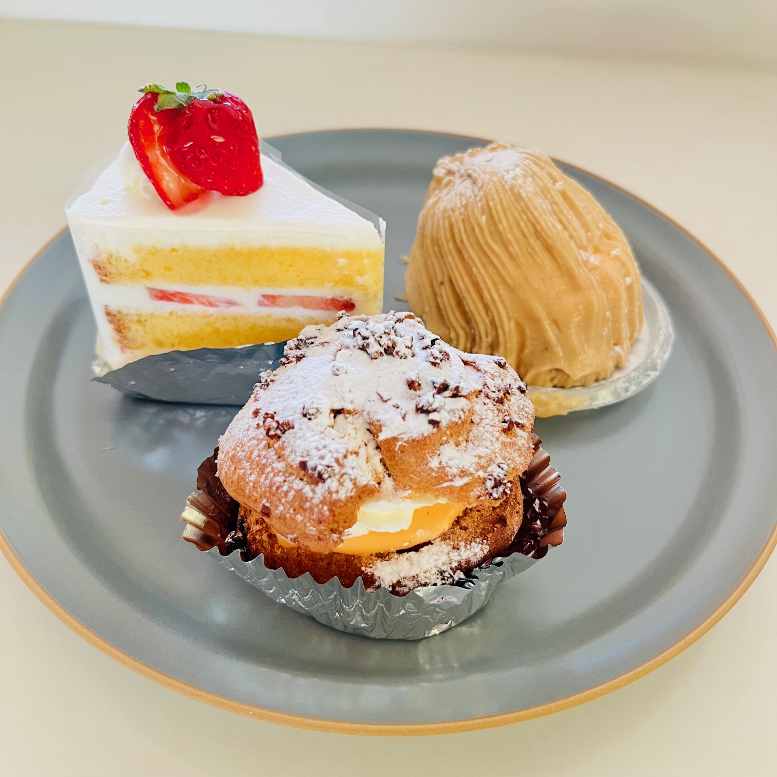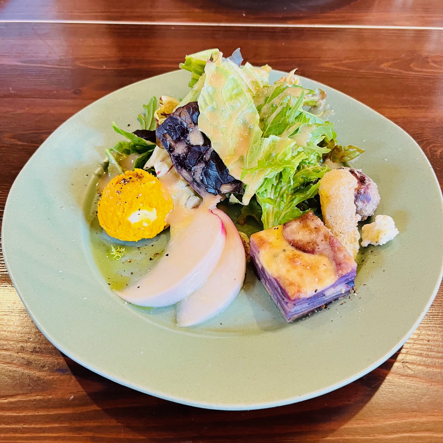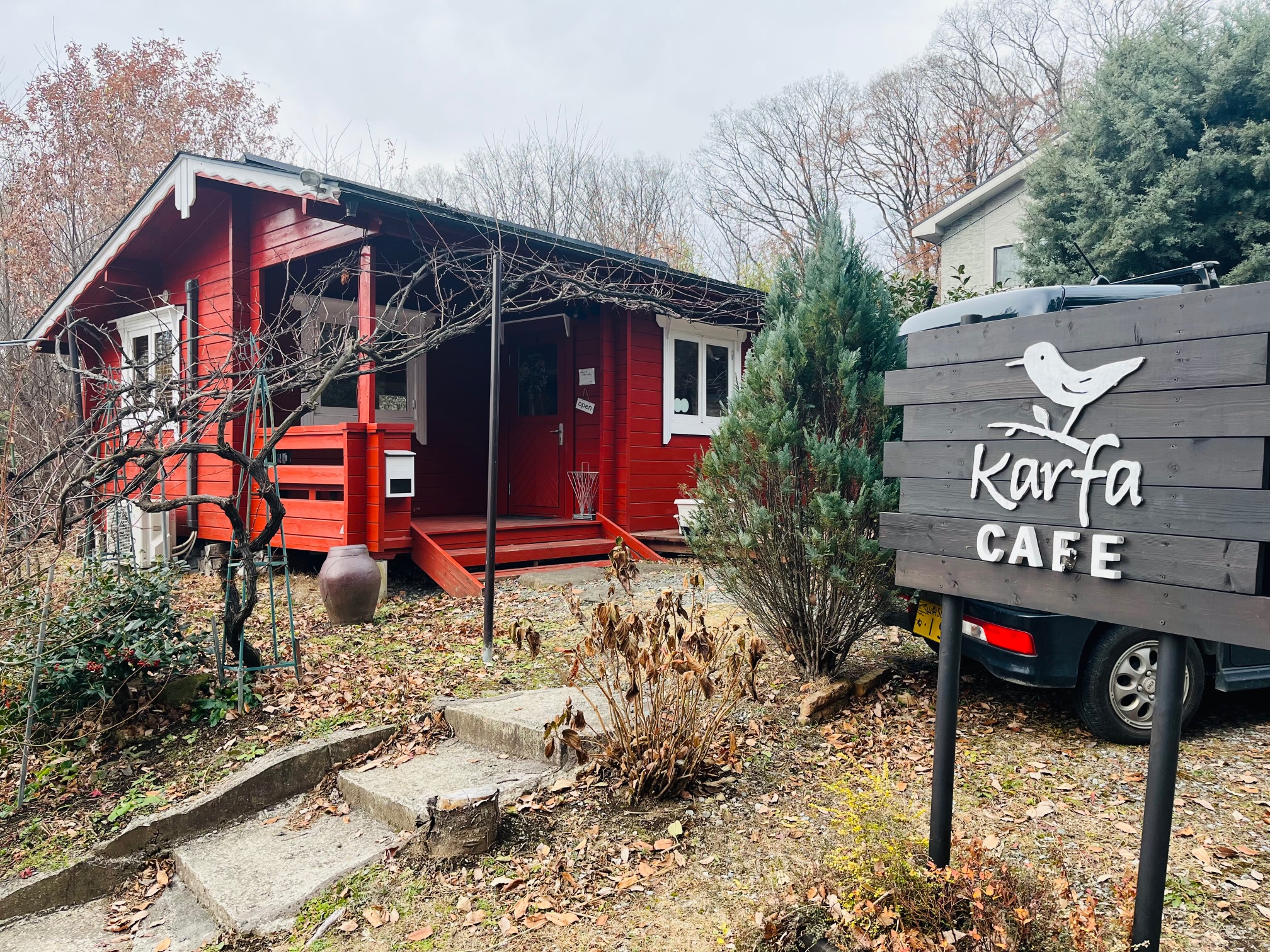 大泉のカフェ 2021/12/21 「おいしいよ」 と聞きつけ 杉山 大泉まで行って参りました 『karfa』カルファ 大人気らしくケーキは予約しておかないと すぐになくなってしまうらしい 前菜 ジャガイモのポタージュ ひき肉とレンコンのパスタ 柚子胡椒をつけて!! ショートケーキ お持ち帰りで ショートケーキ モンブラン シュークリーム (*^_^*)