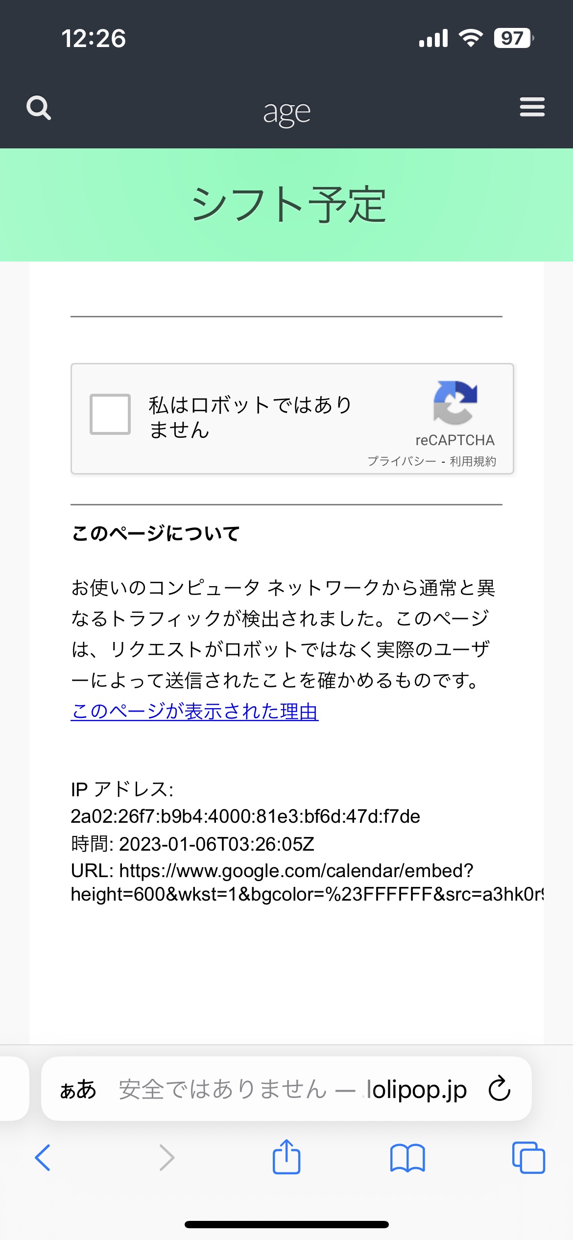 1月シフト更新してあります 2023/01/07 昨年からシフトが見れないと よく指摘されておりました 携帯のホーム画面や ブックマーク、お気に入りなど 保存しておいた物から見ると こんなのが出てしまいます そんな時は 『age山梨』 と検索して頂くとすぐこちらが出てくるので そこから確認お願いします!! *** safariブラウザですと googleカレンダーの使用により 閲覧できない場合があります safari以外のブラウザ (googleなど)でご覧ください *** いつも差し入れありがとうございます